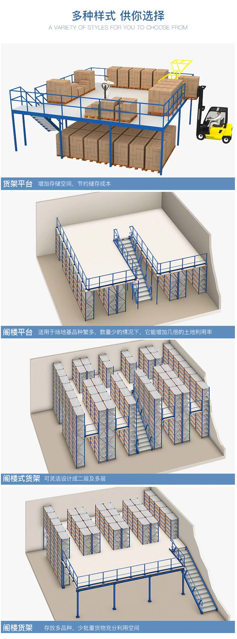 3、閣樓貨架充分考慮人性化物流,設計美觀,結構大方。安裝、拆卸方便,可根據(jù)實地靈活設計!